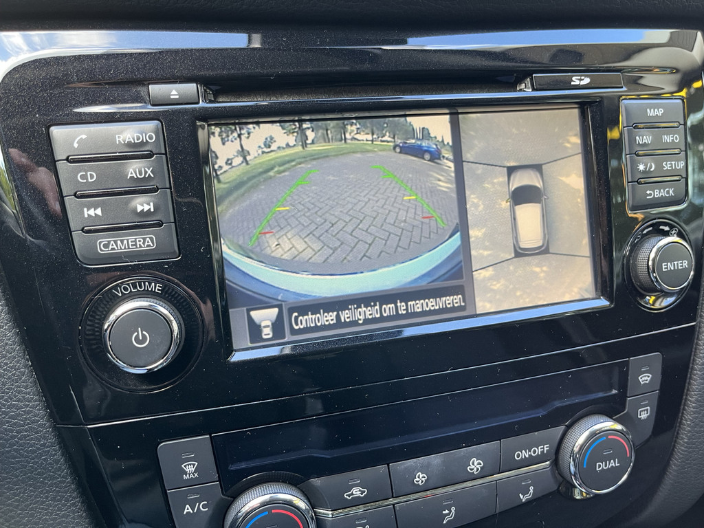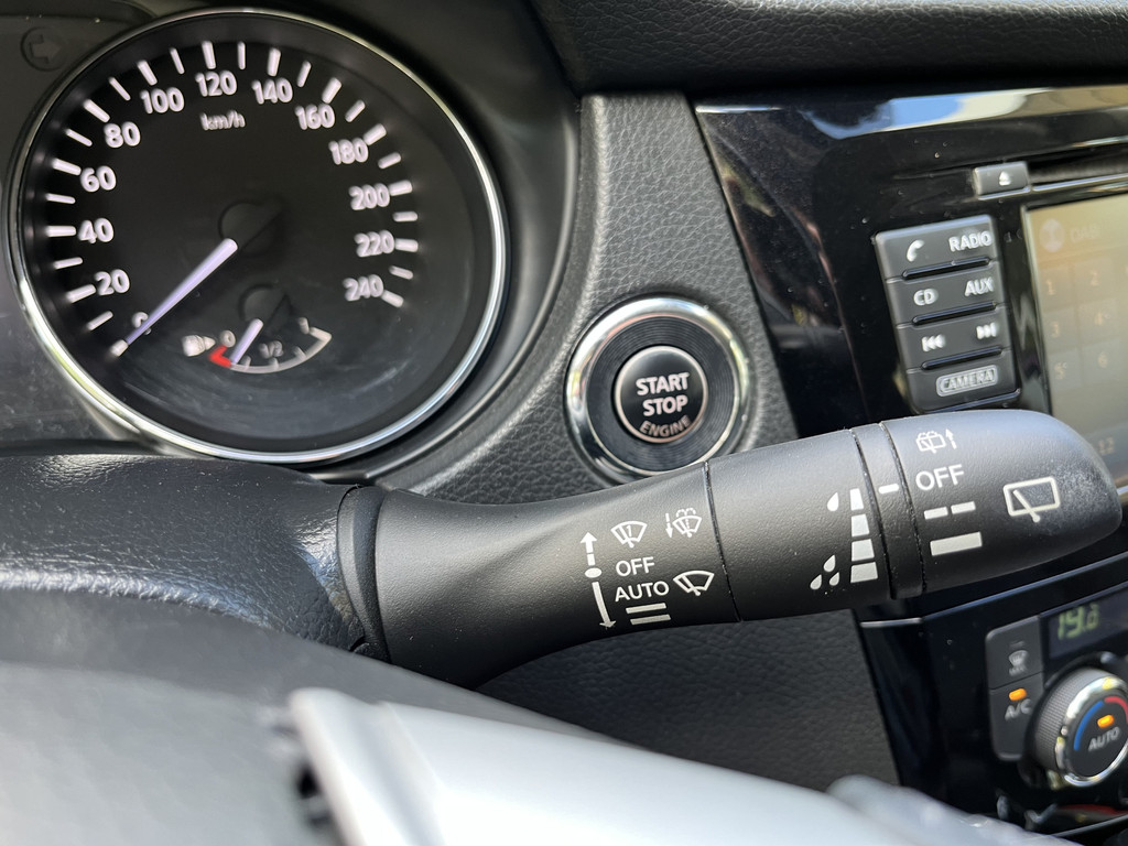 Elk van de vier camera's op deze auto draagt bij aan het creëren van een onbelemmerd uitzicht van 360 graden rondom de auto. In een auto als deze kunt u niet zonder automatische airconditioning, zodat de temperatuur altijd goed is. Superstrak parkeren wordt een eitje dankzij de parkeersensoren. Natuurlijk is er ook cruise control aan boord, waarmee u meer ontspannen en zuiniger rijdt. Een mooie eigentijdse optie is de keyless entry: zonder sleutels gaan alle sloten open zodra u in de buurt bent! Deze Nissan is voorzien van navigatiesysteem, DAB ontvangst, automatisch dimmende binnenspiegel en verstelbaar stuur.