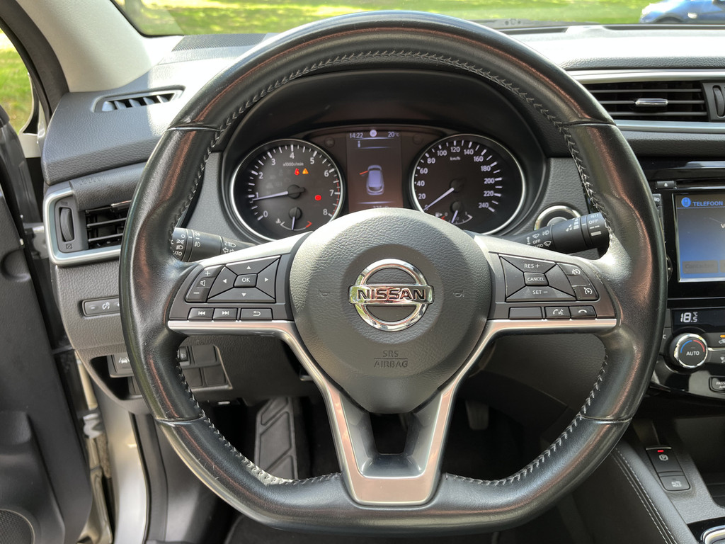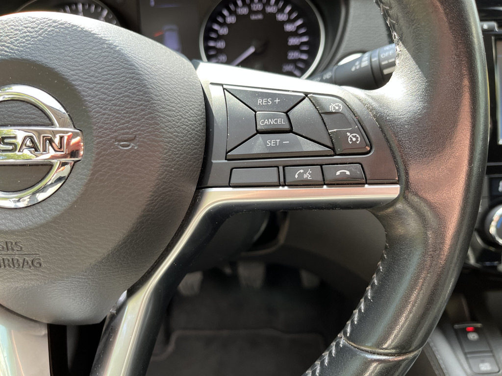 De 360 graden camera wordt mogelijk gemaakt door vier camera's die tezamen werken om zo een uitgebreid zicht te bieden, wat van grote waarde is bij het navigeren door smalle straatjes en parkeerplekken. U kunt tijdens de rit uw ogen steeds op de weg houden, want het audio-installatiesysteem (met dab!) en het full map navigatiesysteem kunt u bedienen vanaf het stuur. De electronic climate control zorgt onder alle omstandigheden voor een prettige temperatuur. Met de aanwezige parkeersensoren weet u altijd zeker of het past. Natuurlijk is een complete auto als deze ook voorzien van sensoren die de omgeving in de gaten houden. Deze Nissan heeft niet alleen een automatisch inschakelbare verlichting aan boord, maar ook een regensensor. Ook cruise control, keyless entry, automatisch dimmende binnenspiegel, lederen stuur, isofix-aansluiting en lederen versnellingspook zijn aan boord.