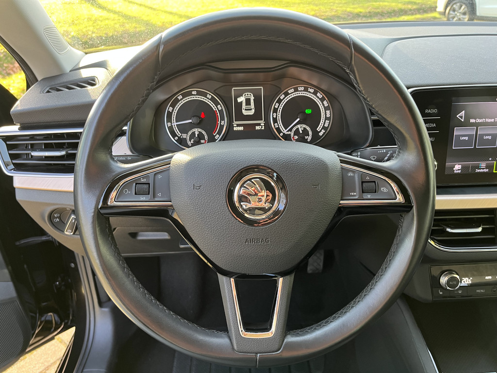Pech oplossen en zelfs voorkomen? Gaat eenvoudig. Via Connected Services heeft u alle data in de hand, gewoon op de smartphone! U kunt tijdens de rit uw ogen steeds op de weg houden, want het audio-installatiesysteem (met dab!) kunt u bedienen vanaf het stuur. De auto is ook uitgevoerd met electronic climate control. Inparkeren en uitparkeren kost geen enkele moeite dankzij de parkeersensoren. Achter het stuur van deze ŠKODA bent u niet alleen. De auto kijkt als het ware met u mee tijdens de rit. De regensensor schakelt de ruitenwissers in als het nodig is en de automatisch inschakelbare verlichting doet de lichten voor u aan. Deze auto is voorzien van cruise control, automatisch dimmende binnenspiegel, lederen stuur, isofix-aansluiting, centrale deurvergrendeling met afstandsbediening en boordcomputer.