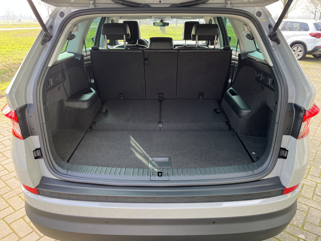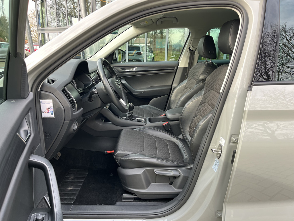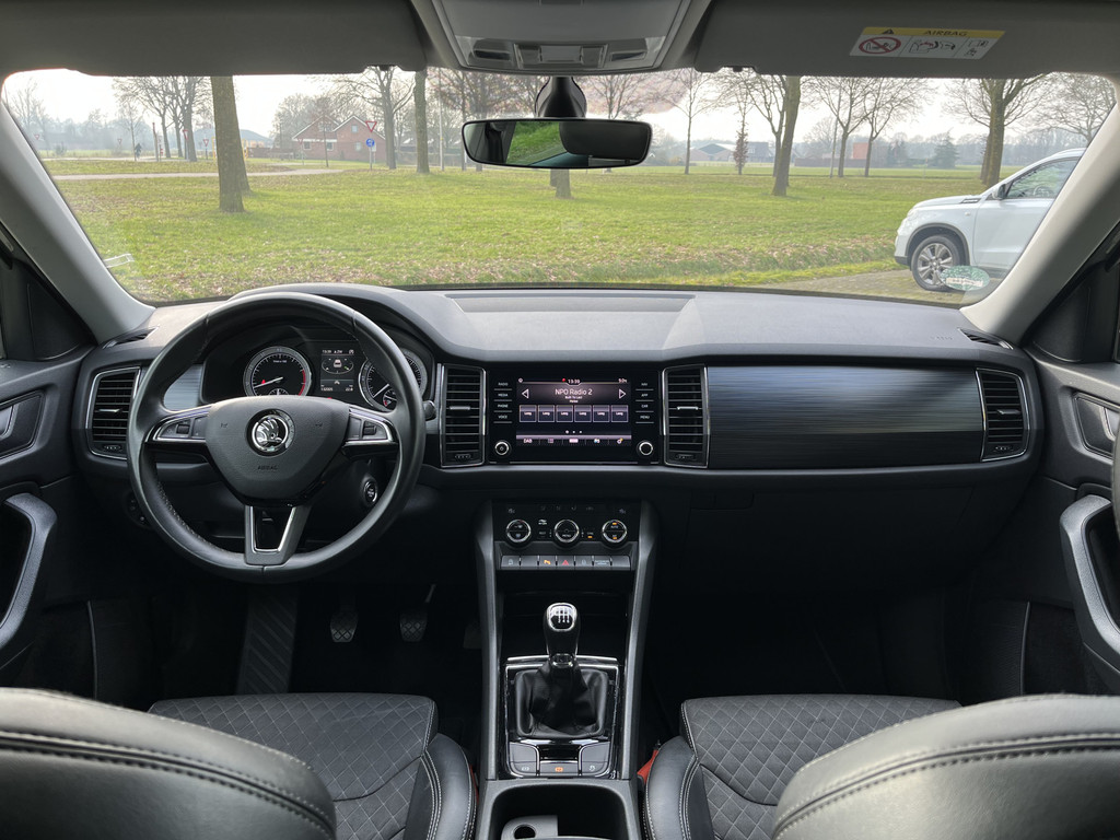 De ŠKODA Kodiaq is ontworpen als een alleskunner waarmee u zowel in de stad als in de buitengebieden uit de voeten kunt. Deze SUV is uitgerust met een benzinemotor en een handgeschakelde zesversnellingsbak. Deze ŠKODA Kodiaq biedt dankzij de derde zitrij plek aan maar liefst zeven personen. En voor meer laadruimte laat u die derde zitrij in een simpele handeling weer verdwijnen. Ook is de auto voorzien van: 18 inch lichtmetalen velgen, LED koplampen, halflederen bekleding, dakspoiler, in hoogte verstelbare voorstoelen en in delen neerklapbare achterbank.