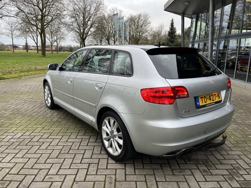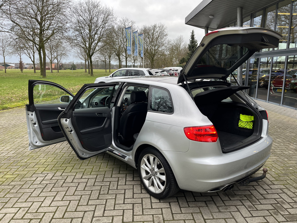 Typerend voor Duitse auto's als deze Audi A3 Sportback is dat een mooi ontwerp en uitstekende rijeigenschappen hand in hand gaan. De stijlvol getekende carrosserie verhult een state-of-the-art techniek, motorisch laat deze auto niets te wensen over en het weggedrag van de A3 Sportback is uitstekend. Met de S-Line styling mag deze auto zeker gezien worden. De aandrijving van deze Audi wordt verzorgd door een viercilinder benzinemotor en een automatische transmissie. De sportstoelen geven het interieur een super strakke look. Het interieur baadt in een zee van licht door het glazen panoramadak. Met de krachtige xenonverlichting heeft u optimaal zicht in het donker. De uitmonstering van deze auto wordt gecompleteerd door onder meer 17 inch lichtmetalen velgen, sportonderstel, halflederen bekleding, warmtewerend glas, LED-dagrijverlichting en dakspoiler.