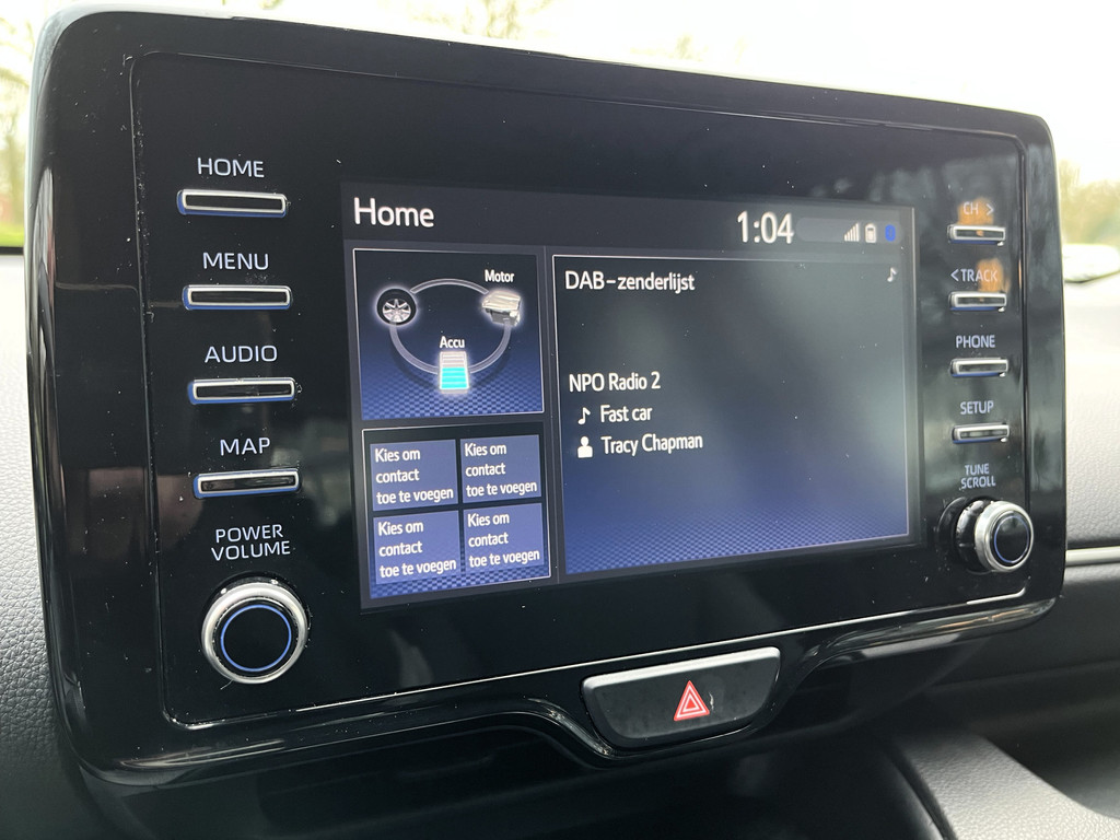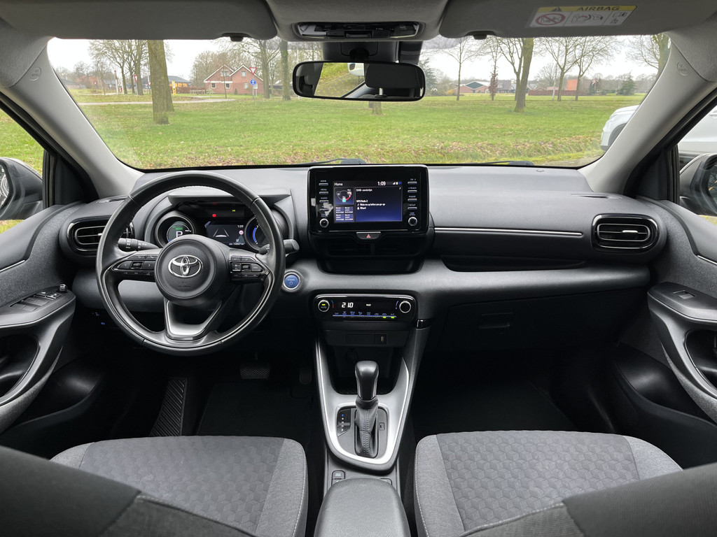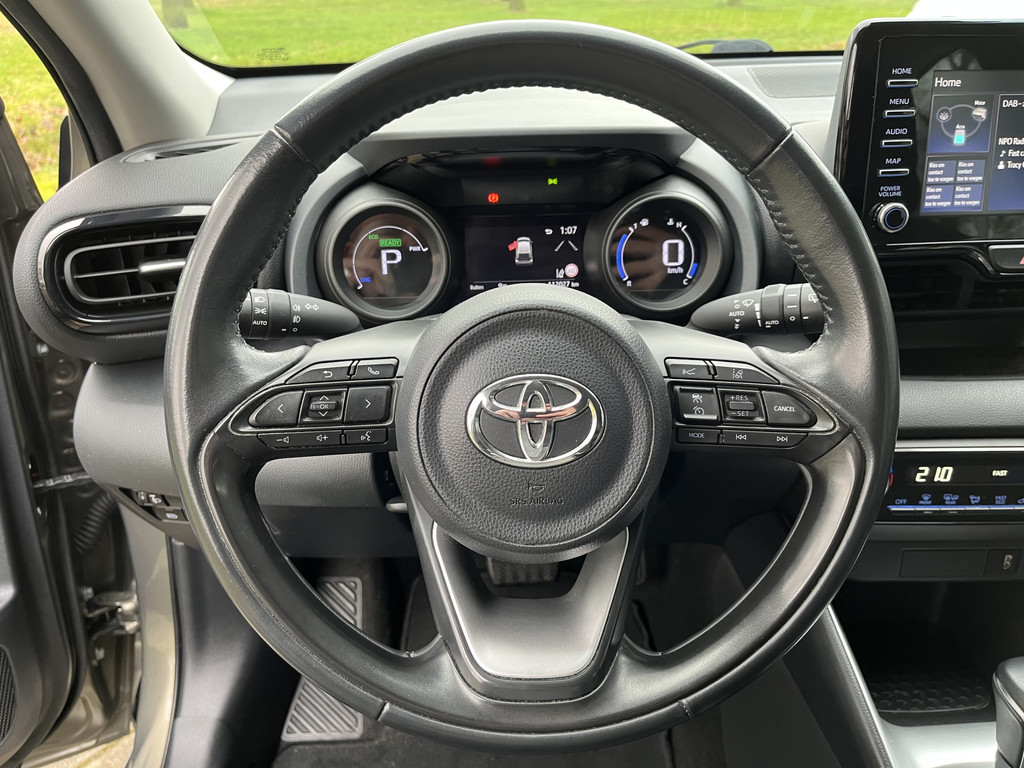 U wordt geïntroduceerd tot de digitale wereld van mobiliteit waarop alles wat u wenst wordt geprojecteerd op het digitale dashboard. Kom maar, kom maar, kom maar... ho! Prettig hoor, zo'n achteruitrijcamera. Met adaptive cruise control houdt de auto zelfstandig afstand tot uw voorligger. Een veiligheidsverhogende optie waarmee u comfortabel onderweg bent. Veilig en comfortabel rijden wordt nog eens versterkt door Connected Services, zodat u diverse vitale functies van de auto altijd kunt checken in de app. In deze Yaris vindt u schakelaars op het stuur om het audiosysteem met dab-ontvangst te bedienen. Natuurlijk behoren automatische airconditioning, regensensor, keyless entry, lederen stuur en lederen versnellingspook ook tot de uitrusting van deze complete auto.